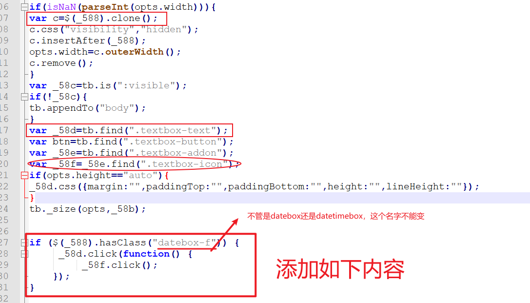 修改jquery.easyui.min.js文件 通过Ctrl + f 输入 tb._size(opts 进行定位 在其下方添加如下代码: 注意: _588、_58d、_58f 这三个需要根据自己的进行修改。 版本不同可能有很大的区别!!!...