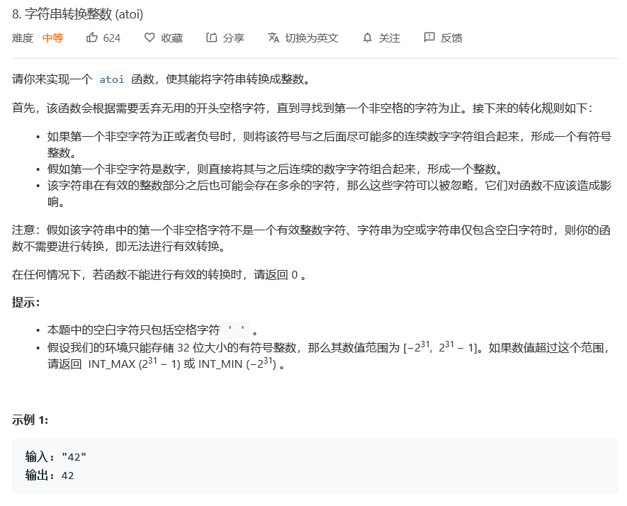 1.首先直接上题目 题目网址: https://leetcode-cn.com/problems/string-to-integer-atoi/submissions/ 如果真正自己去写的话,可能得改很多次特别麻烦,看了下大佬的题解,都是用streamstring直接转化的。 所以就在此记录下streamstring的用法...