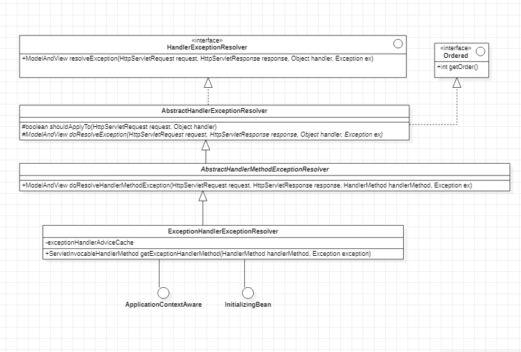 记录<mvc:annotation-driven/>注册的第一个 HandlerExceptionResolver : ExceptionHandlerExceptionResolver, 继承关系如下面所示.