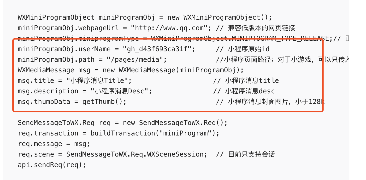 1、小程序缩略图的图片比例是:5:4,图片在分享过程中会被微信进行二次压缩,如果出现图片模糊的情况,可以修改成一张稍微高质量的图片,但是大小要小于128K 2、需要小程序的原始ID: gh_xxxxxxxx 一定是gh开头的 3、需要path:pack-xxxx/xxxxx/xxxxxx 类似这种 4、使用微信分享方法,我这里用的是原生微信分享,没有使用第三方 ...